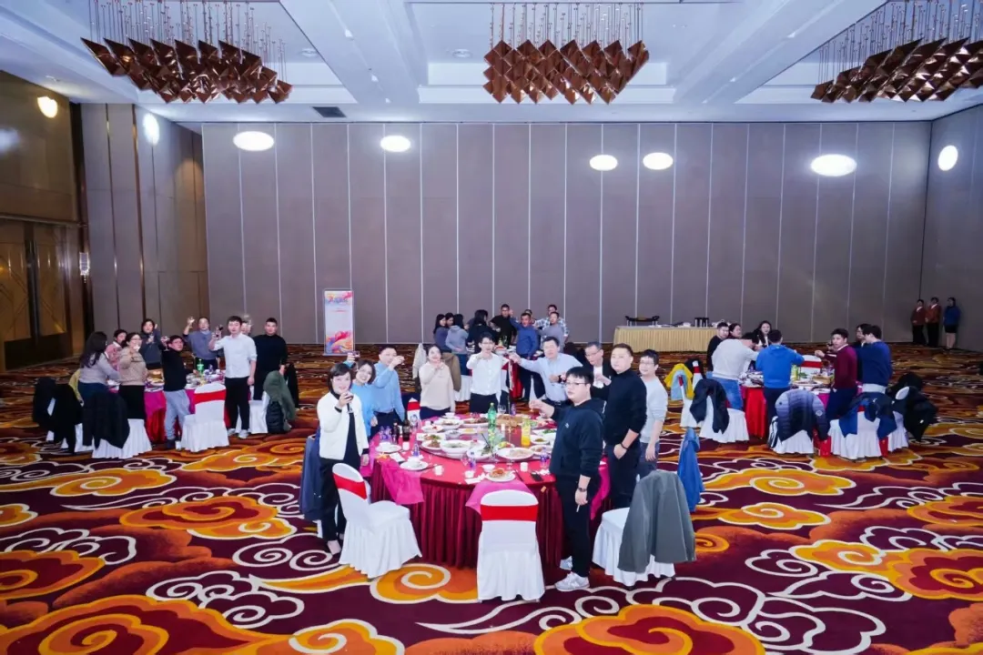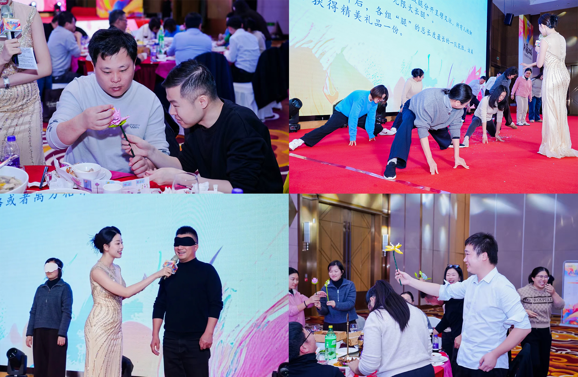 現(xiàn)場,精彩紛呈的節(jié)目表演、緊張有趣的互動游戲與多輪驚喜抽獎輪番上演?!斗e木拼搭》、《無限大長腿》、《蒙眼踏步》等游戲妙趣橫生,大家在協(xié)作中增進(jìn)默契,歡聲笑語不絕于耳。幸運(yùn)抽獎環(huán)節(jié)更是驚喜連連,不斷點(diǎn)燃現(xiàn)場的氣氛,彼此的情誼也在觥籌交錯間愈發(fā)深厚。